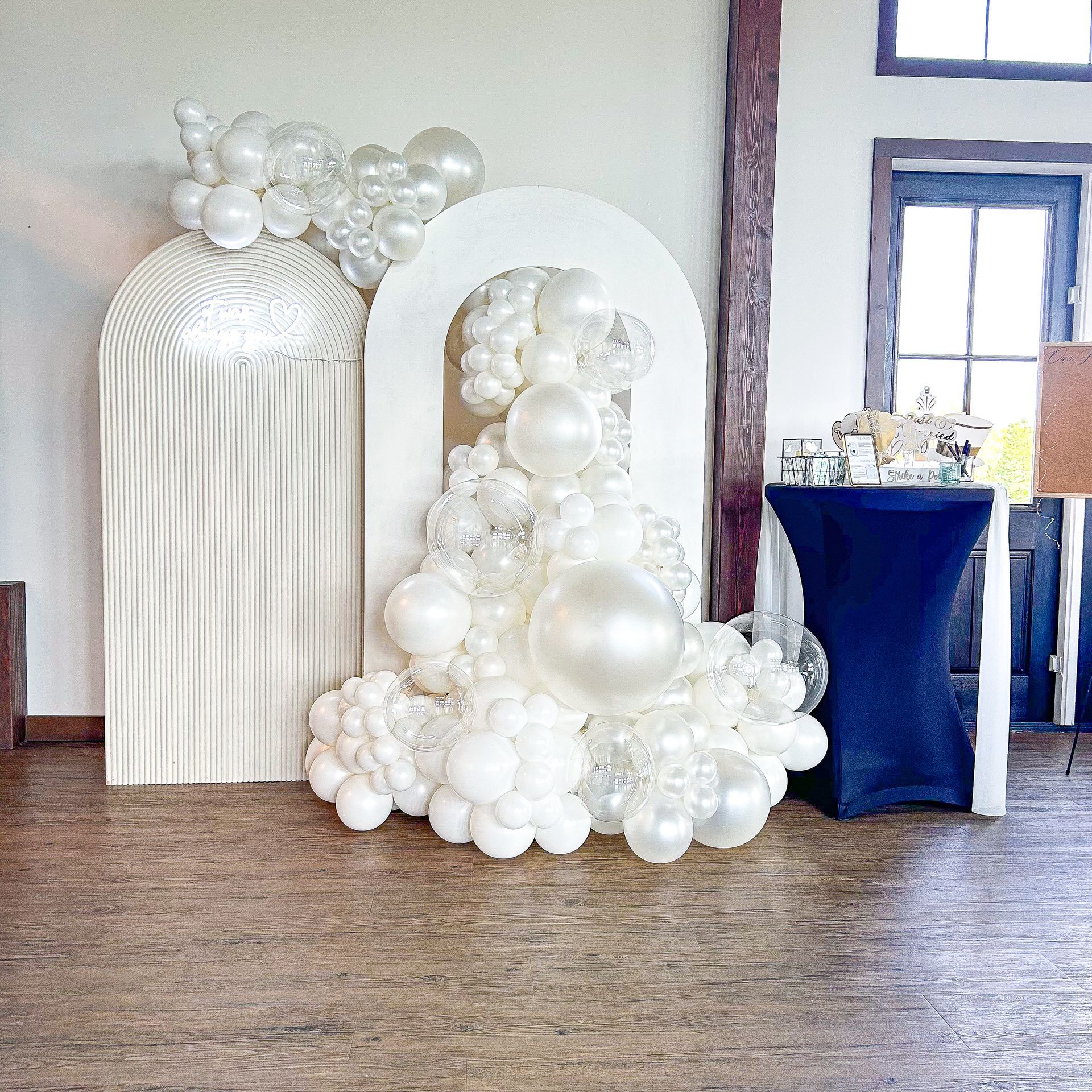 Balloon decor for a bridal shower by Balloon Boss YXE elevates the ambiance, infusing elegance and romance into the celebration with customizable designs tailored to the bride's style and theme. The decorations serve as stunning photo backdrops, capturing precious moments and creating lasting memories for the bride and her guests. Additionally, our professional installation ensures a seamless setup, allowing you to relax and enjoy the festivities without any added stress.