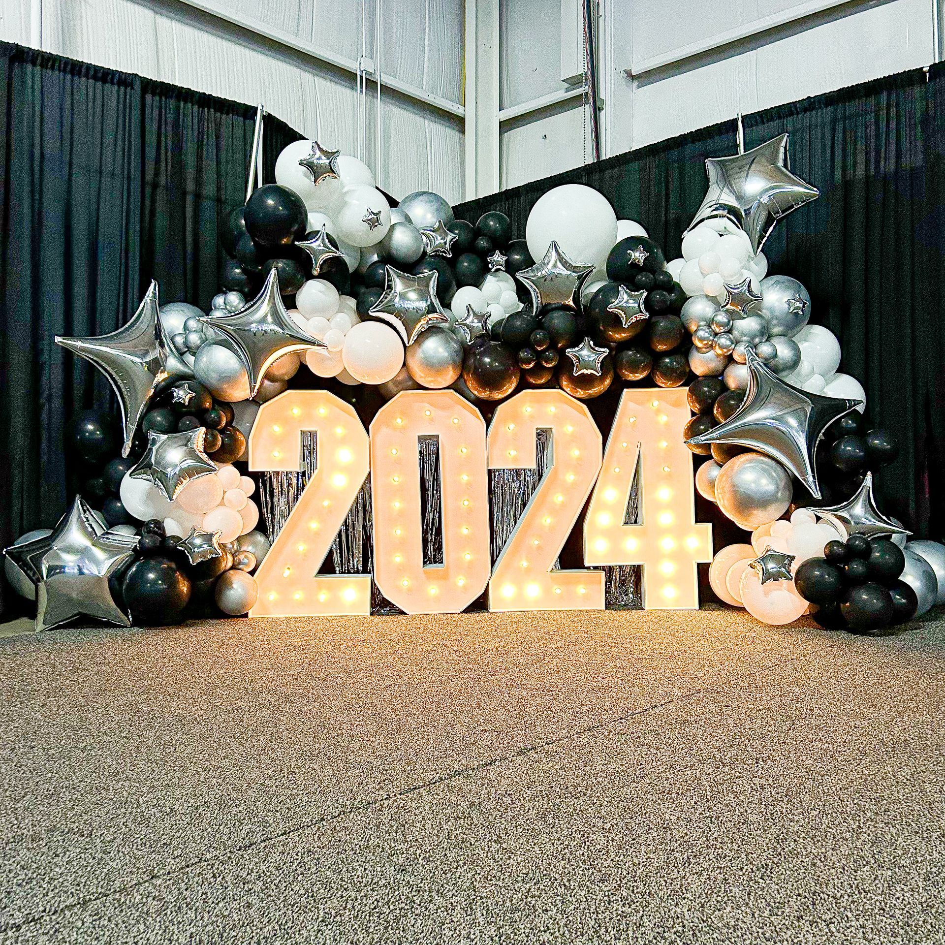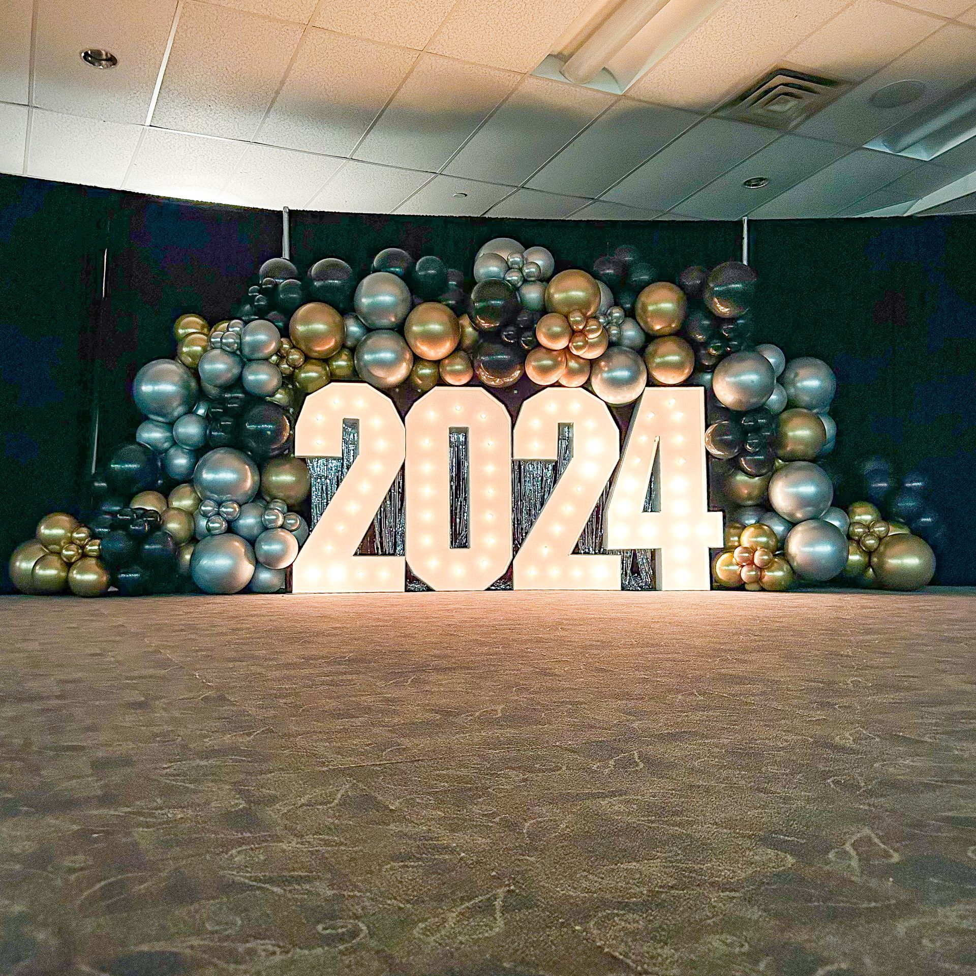 Light up marquees from Balloon Boss YXE add a stunning visual impact to your event, creating a vibrant and festive atmosphere with customizable, illuminated letters and numbers. These marquees not only enhance the décor but also serve as perfect photo backdrops, ensuring your event is both memorable and Instagram-worthy. Additionally, their versatility allows them to fit seamlessly into any theme or color scheme, making them a standout feature at weddings, birthdays, corporate events, and more.